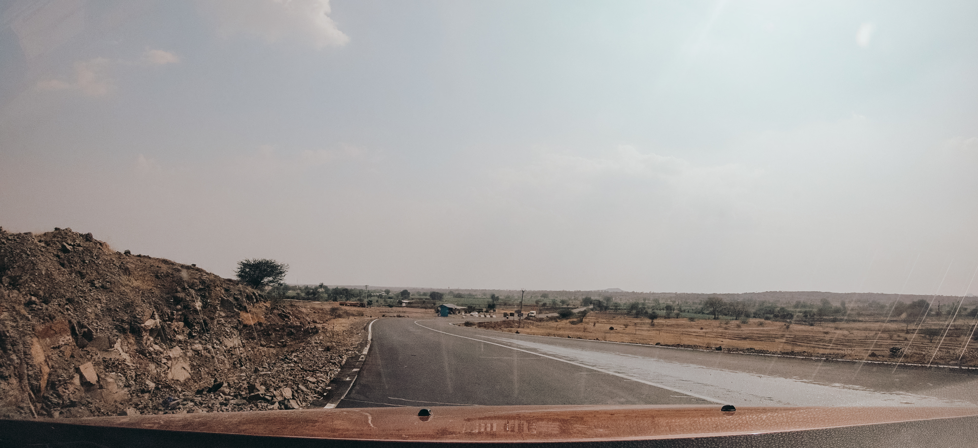 Panchgani sits in the Western Ghats. The road down from it descends through the hills and then gradually levels out. Or appears to.